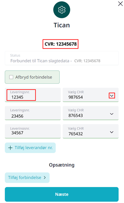 Der kan tilføjes flere ved at klikke på ”+Tilføj leverandørnummer”