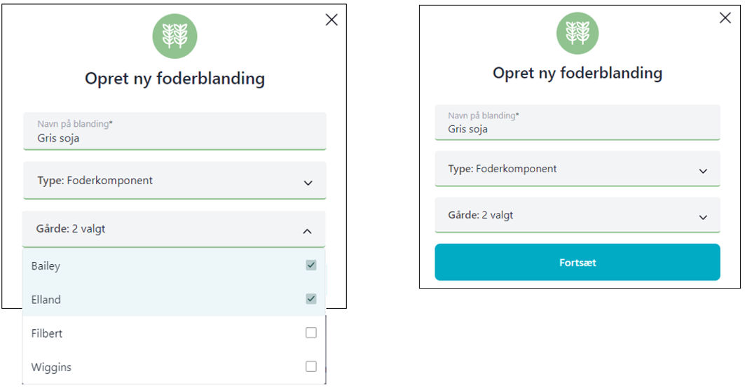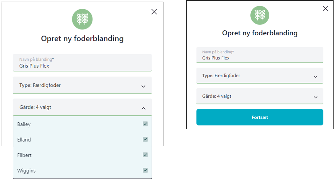 - Vær opmærksom!: Du køber eksempelvis en foderblanding med navnet GriseMix Start 30-55 kg. Du anvender kun blandingen ind til 40 kg. For at det er nemt for dine medarbejdere, navngiver du blandingen “Blanding 1, 30-40 kg”. Det kan give rigtig god mening, man skal blot være opmærksom på, at det kan skabe forvirring, hvis navnet på blandingen i PIGS365 afviger fra følgesedlen, eller når der skal bestilles foder ved foderleverandøren