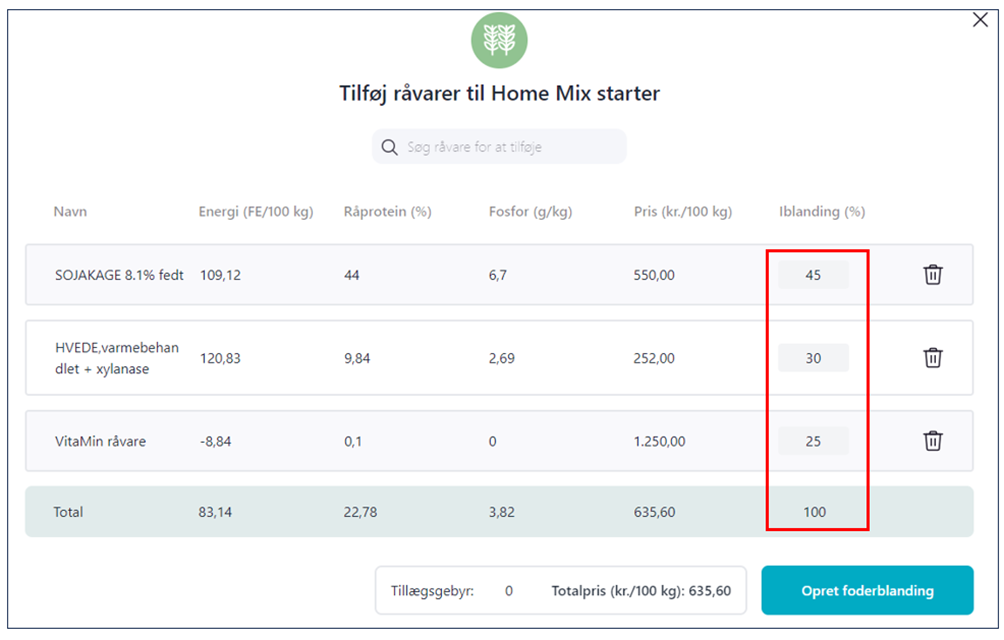 - Tryk "Opret foderblanding"