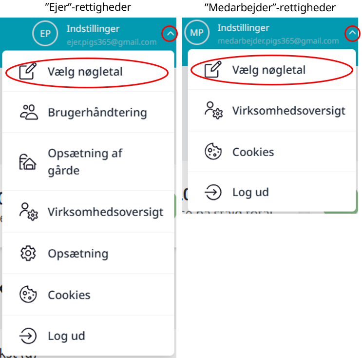 På dashboardet kan nøgletallene redigeres ved at trykke på ”Indstillinger” øverst og derefter klikke på ”Vælg nøgletal”.