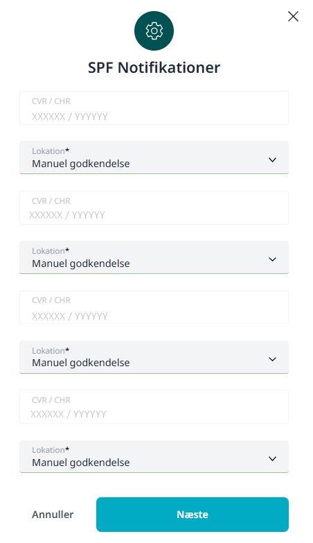- Ændre lokation i dropdown-menuen ud for hver CVR/CHR.