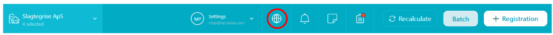 You can change the language by clicking on the globe next to "Settings". This will also changes the language in the apps.